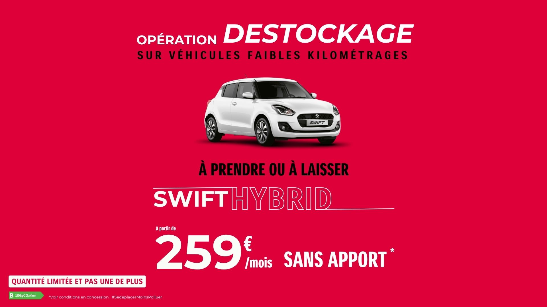 *Exemple pour la location longue durée d’une Swift Hybrid Avantage sur 60 mois et 75 000 km acheté neuf avant le 31 décembre 2025 : 60 loyers mensuels de 259€ TTC clés en main. Coût du kilomètre supplémentaire entre 0 et 10 000 km : 0,11€, au-delà 0,20€. Consommation en cycle mixte (l/100km) : 4,7 – Emissions de CO² en cycle mixte WLTP (g/km) : 106. Offre non cumulable, dans la limite des stocks disponibles, valable du 30/10/2025 au 31/12/2025, réservée aux particuliers dans le réseau Cotrans Suzuki – RCS St Denis 444 285 825 participant et sous réserve d’étude et d’acceptation par CREDIT MODERNE OCEAN INDIEN, S.A. au capital de 4.575.776 € – Siège social : 28 rue Lislet Geoffroy 97490 Ste Clotilde – RCS St Denis 333 353 944 . N°Orias 07029039 (www.orias.fr).